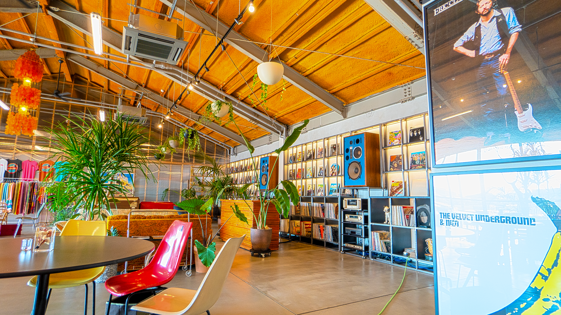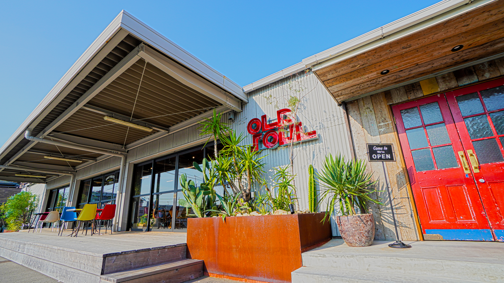 もともと倉庫として使われていた空間をそのまま活かした開放感あふれるダイナー。