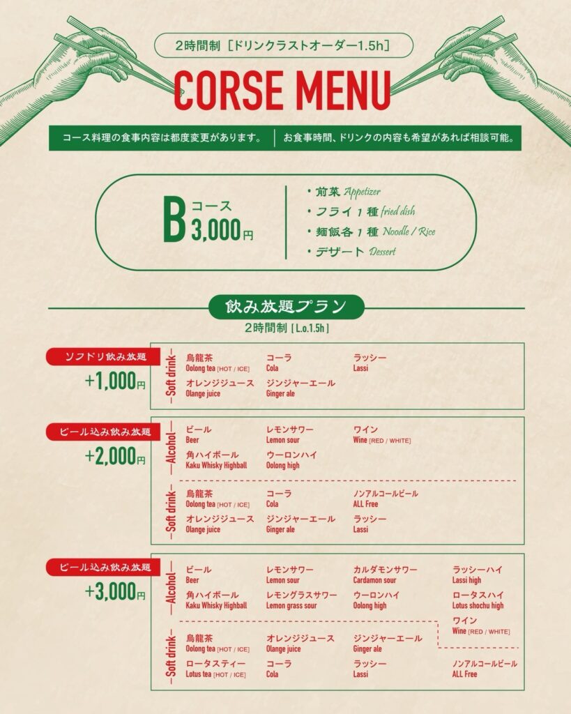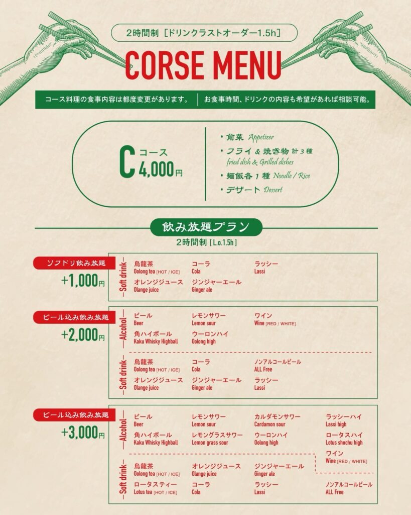 コースは2時間制(ドリンクL.O.90分)