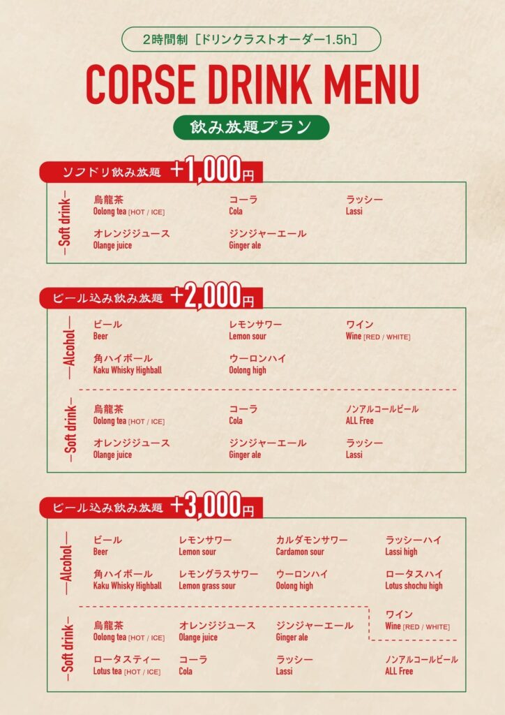 ■ ドリンクプラン(全3種) (1ドリンクオーダー制/単品も可)