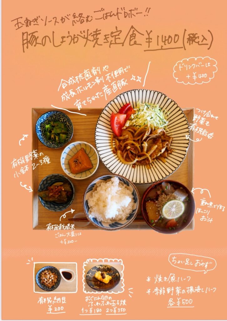糸らしく、食材から調味料までこだわった定食メニューです。